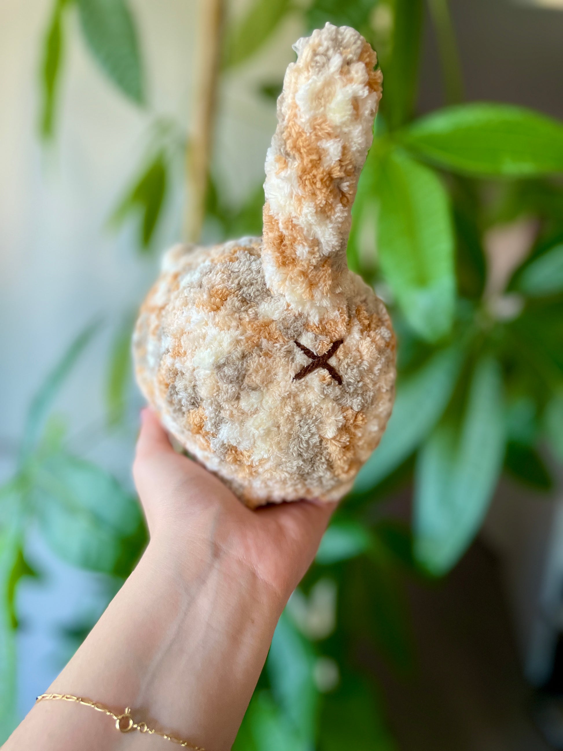 Yeux en plastiques et détails en fil acrylique.