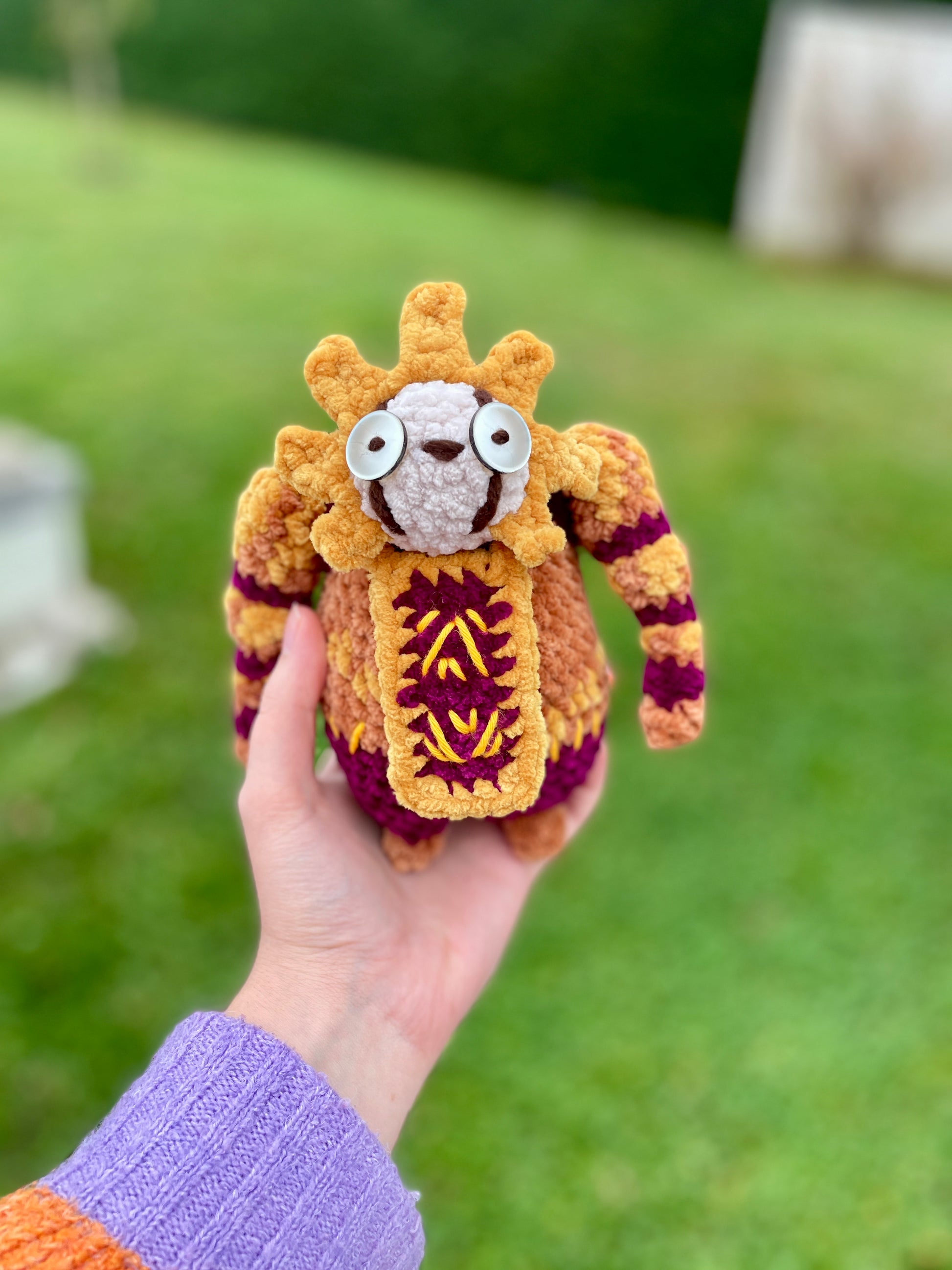 Cette peluche a été réalisée avec du fil chenille 100% polyester certifié OEKO-TEX® STANDARD 100.