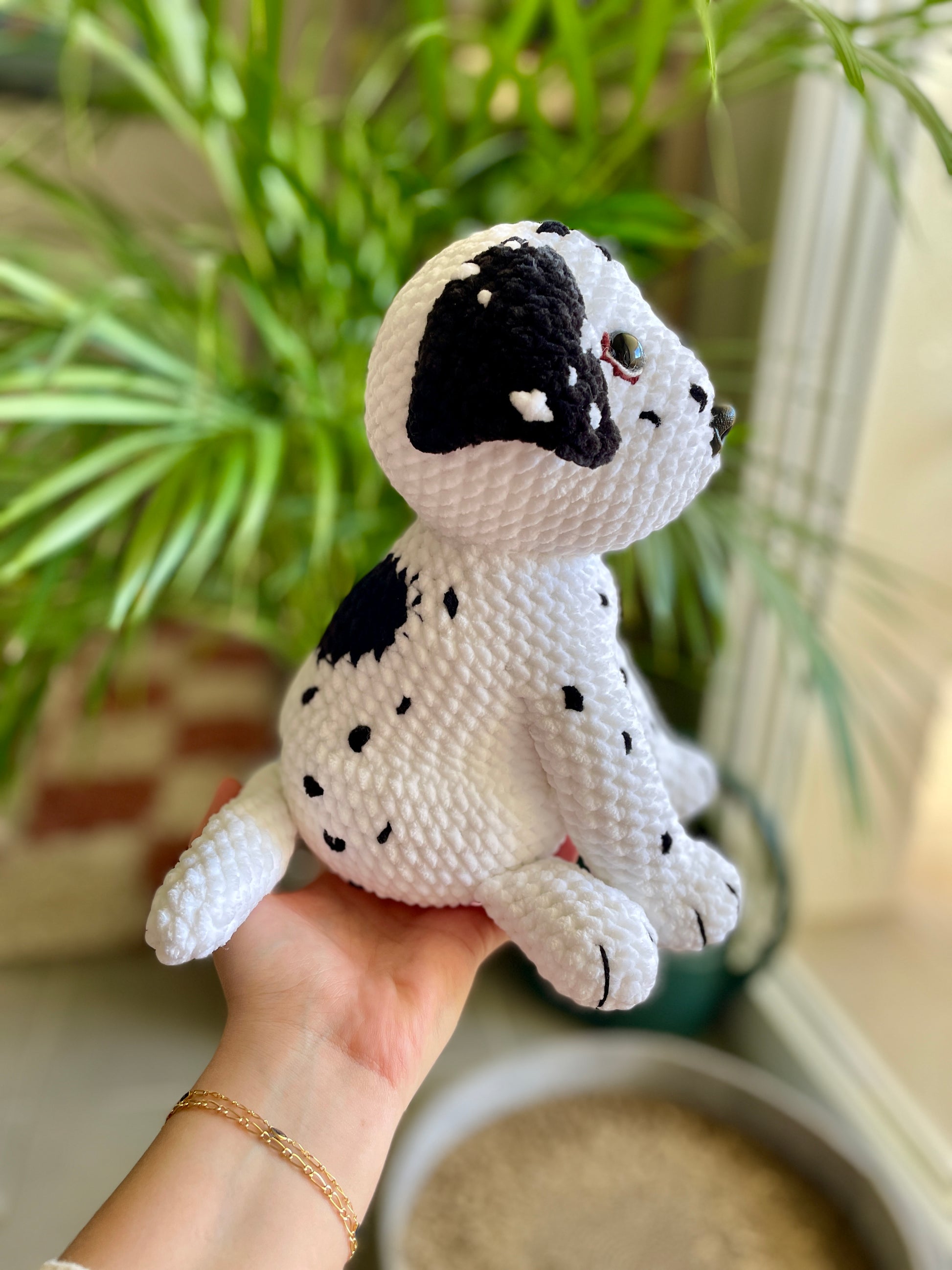 Peluche chien custom selon photo, environ 25cm.