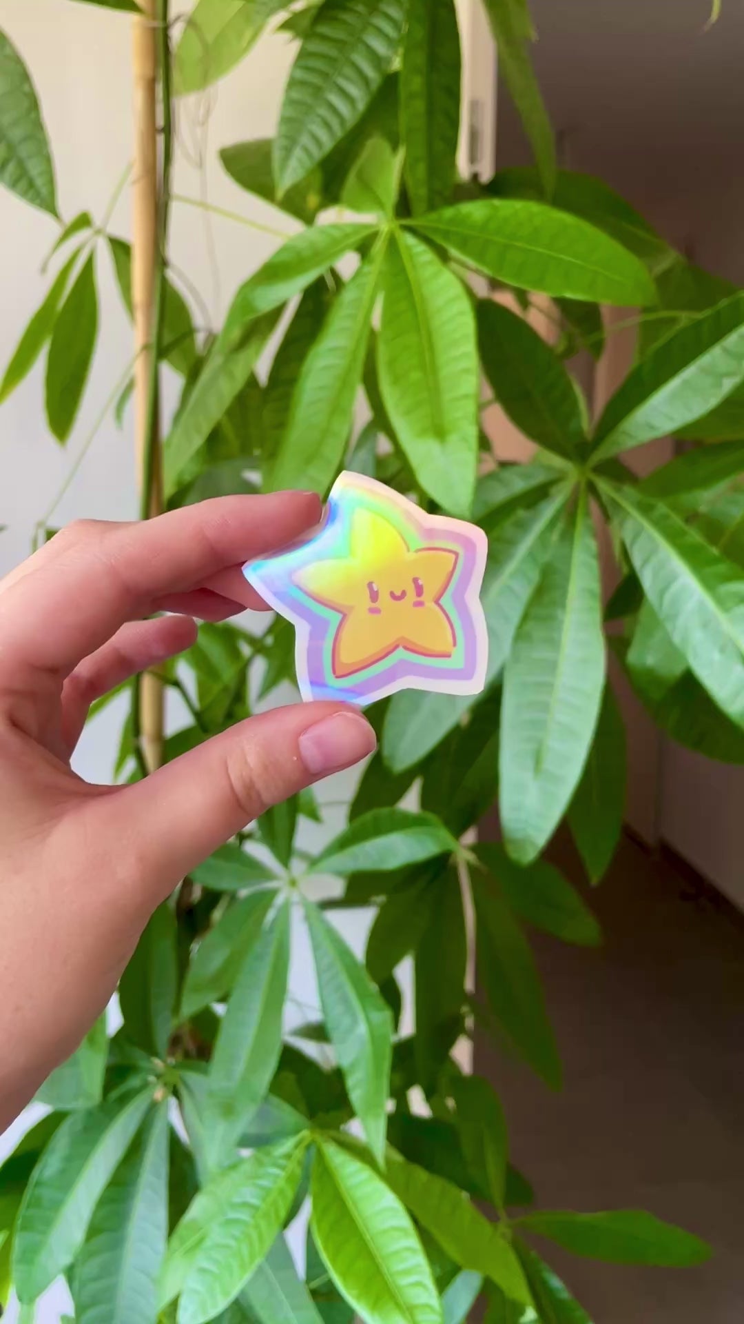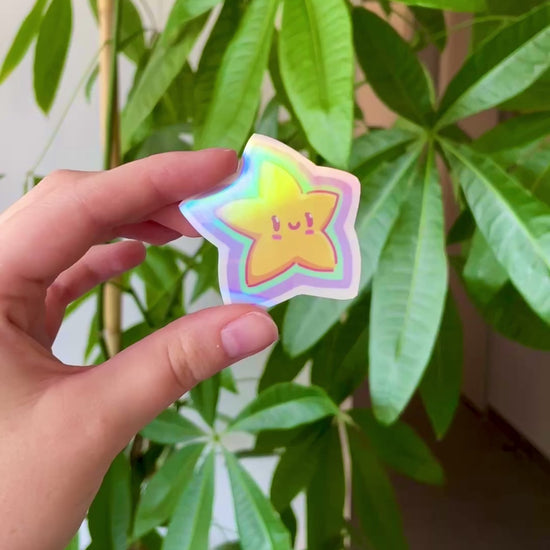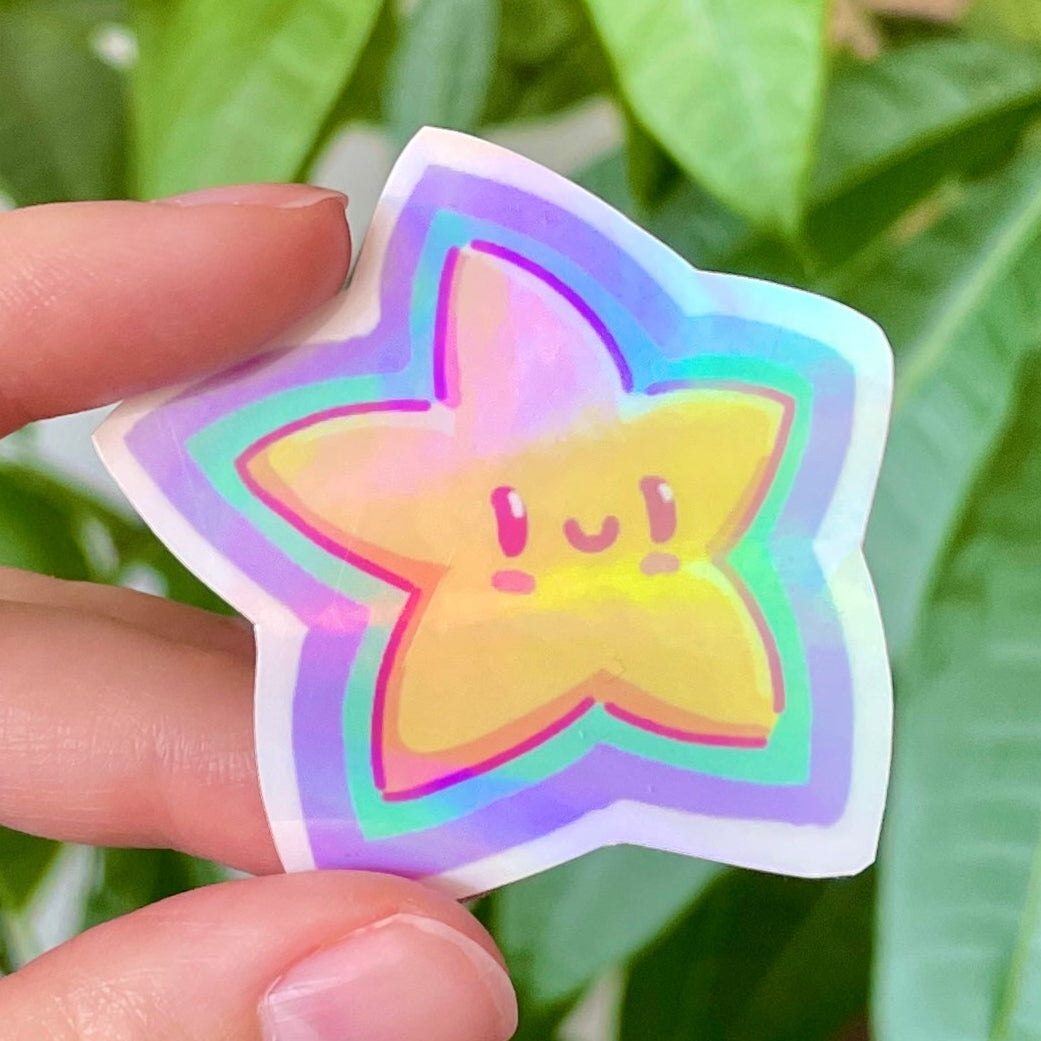⭐ Joli sticker à reflets holographiques représentant une étoile mignonne avec un contour bleu ✨