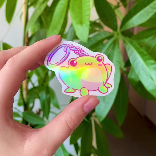🐸 Joli sticker à reflets holographiques représentant un porte-clé grenouille ✨