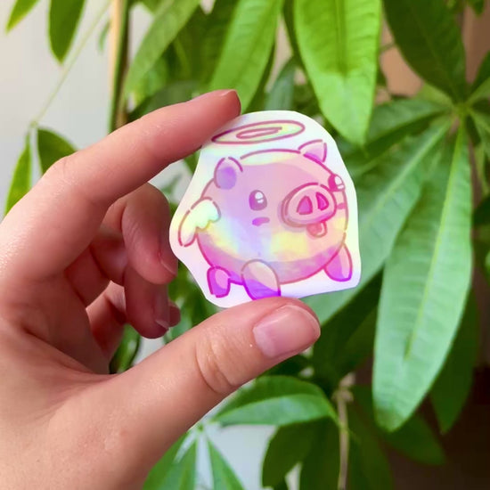 🐷 Joli sticker à reflets holographiques représentant un cochon angélique ✨