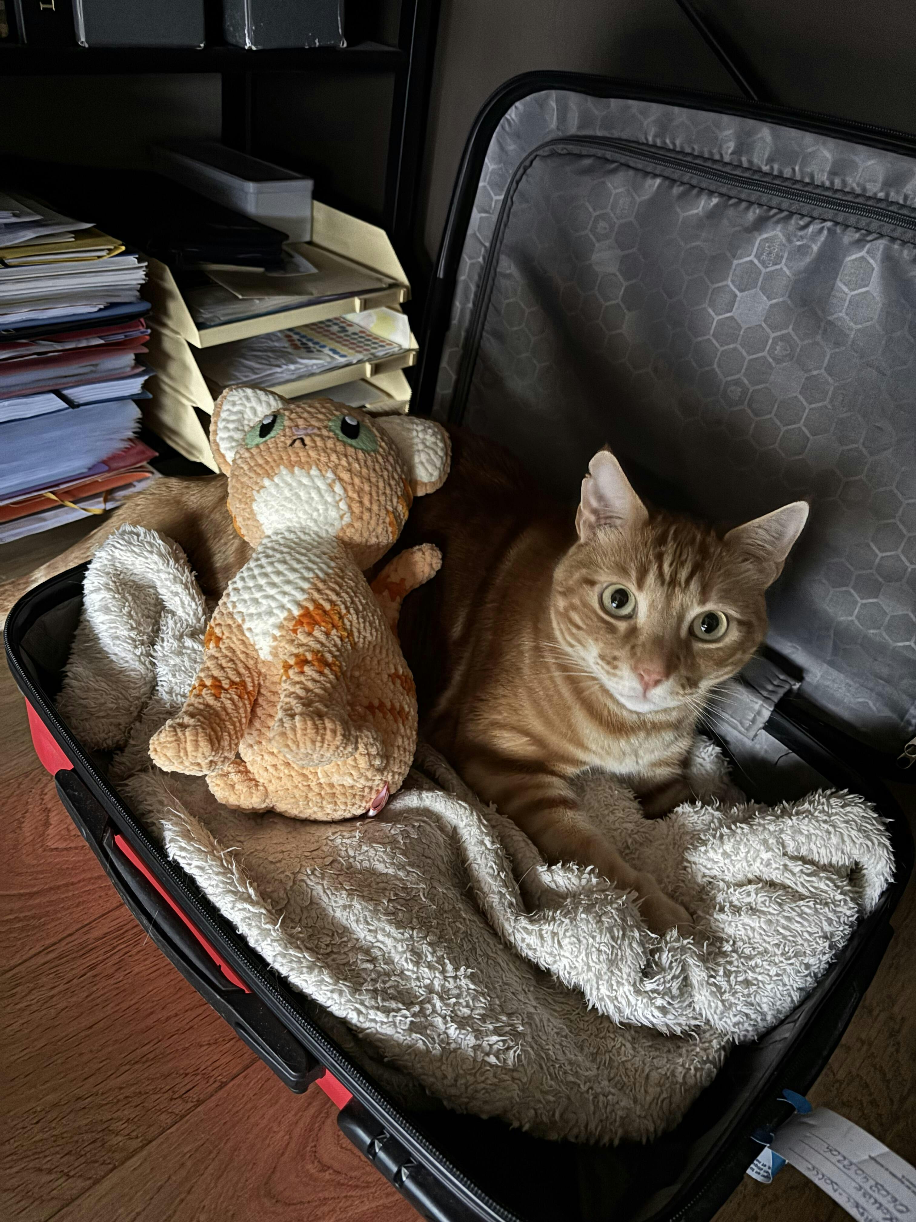 Peluche chat custom selon photo, environ 25cm.